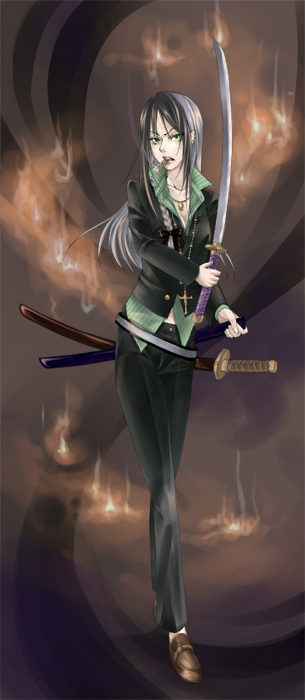 みんなエゼさんの女装に期待しすぎだよなあと思いつつ次回の闘技大会におけるせいがさんのラッキースケベ(ムルシドさんに抱擁)っぷりにも期待する6月の夜半。 梅雨何処行ったフォルァ。 まあ色々と今更なのですが萌えキャラリストなぞを作ってみました。 興味のある方は続きをどうぞ。 PR 不真面目な人ほどダメージの低い毒霧を受けてワースト2だった。 せめて2位はせいがさんのほうが収まりよかったのではなかろーか!言ってもどうしようも無いけれど! しかしエゼさんは神降りてる。女装とエロスの・・・おもに女装の・・・ というわけで女装に期待プッシュしてますぜ。フォウトさん。 たじまもとい堕島は初期装備強ぇーわCP多すぎだわーで夢が広がりまくりんぐですね。 正直選択の幅がフリーダム過ぎて駄無には蝶悩みどころですむー。 無難に平原行くのも良いがちょっと冒険してみるのも手だろーか。 まあ更新日曜なんでゆっくりと。してる余裕もねーよあと三日だよコンチクショオー! キャラ設定も皆さん良い具合に壊れてる感じですね。 エリンギにスク水とか最強すぎるだろ・・・ 機会があったらツボキャラリスト作ってみたいかも。 更新来ましたねって一日ほど遅いな自分。 良いんだよ確定したの日曜の夜だから!良いんだよ! ミニデビル当たってて良かった良かった。 いやあそこしかないって思ってたね俺もごめんなさい他力本願寺でした。介錯。 次の通常戦は偽妖精いなけりゃわくわく動物ランドだよね。 闘技大会は予想通り負けました。トマホゥクとフライングハンマーちょう痛い。 非接触当たった時点で勝負は決まってたのかもナアペンギンさんの眉剃りたかったなあなんて思いながらNEXTいってみたら次の相手はエゼさんアーヴィンさんナミサさん。 なんというトライアド。 なんという師弟対決。 なんというメガネ対決(ナミサさん&てぃすかさん)。 なんという・・・ええと刀対決(アーヴィンさんの親御さんとラルク)。さすがに無理があった。介錯。 水曜の闘技大会に向けて色々考えたく思う所存。 そういえば水曜から堕島も始まるのであった。 PCはラルクの息子です。割と普通のどこにでも居そうな少年、できれば博愛主義者というのを目指したいですね。 「愛は世界を救う」をテーマに夢の島を堪能したいと思います。 偽島のブログをとうとう始めてしまったぞぉーーー!! 流れに乗り遅れた感が否めないが始めたぞぉーーーー!! まだ何もねえええええええ!! うおおおおお!!ぬおおおおお!!うりゃああああ!!ぶべらばああああああ!! そして吉田は考えるのをやめた。 ラルク・ゼットクロウド-L'arc Getteclaude- ・基本設定 シチリア系極道の構成員。旦那も子も居る30代。極東の剣術を得意としており、エモノは日本刀。 長い間師事したのがジャパニーズマフィアのソードマンと言う事もあって流儀・作法などはJAPANの影響が強い。 組織に入って十数年、自分のシマを持ち、それなりの地位に就いた為、暫くの間一線から退いていた。 なので久々の鉄火場にわくわくしている大人気ないひと。要はただ気晴らしに暴れたいだけである。 時は幕末に生きた名工・源清麿の打ったとされる刀を法外な手段を講じて入手し、肌身離さず所持しているが勿体無くて滅多な事では抜かない。 なので、使うのは基本的にもう一つの刀。こちらはコロコロ変わる。 短気でワイルドに横暴、高圧的で尊大。机には足乗っけて当然と思ってるぐらいに尊大。 精神的に余り余裕が無い。 基本的にドS、人を苛め抜く事が3日の食事より好き。 好きな物は葉巻(ブローニングM2も真っ青なウルトラヘヴィマシンガンスモーカー)と夫。 嫌いな物・紙巻煙草とコーヒーのブラック。 特技は花山薫ばりの前蹴り(通称ヤクザキックorケンカキック)と全力の刺突でピアス穴開ける事、無論他人に対して。 ロザリオぶら下げてるけど慈悲はない。 ・経緯&背景 名前表記や偶に出るお国言葉が仏語なのはフランス生まれの為。 紆余曲折あって腕を持て余していたところをファミリー(と言うか現在の夫)に拾われた。それからヒットマンになり夫と共にトントン拍子で組織を駆け上がる。 島には「暴れる為に訪れた」などと言っているが実際の所はボスから直々に調査の命を受けての来訪。組織の目的を口外しないのは掟。ファミリーの利益の為なら全てを欺く覚悟。 ホントはマフィアと言うのも言ってはいけないのだがPLがプロフィールに書いてしまったので仕方がない。 唾棄されるべきである。 なんでシチリアマフィアなのによりによって仏蘭西人やねんと言うと我ながらアホみたいな理由だが名前のスペルを「L'arc」にしたかったから。 唾棄されるべきである。 ・外見等 身長は160半ば程。 髪の長さは腰より少し上ほど。色は白、前髪のみ黒。右サイドは三つ編みに。 ツリ目の三白眼、瞳の色はエメラルドグリーン。目つき悪し。 一見クールそうで居て常時イラついてる・常時葉巻吸ってる・常時刀に手を掛けてるの余裕が無い三拍子